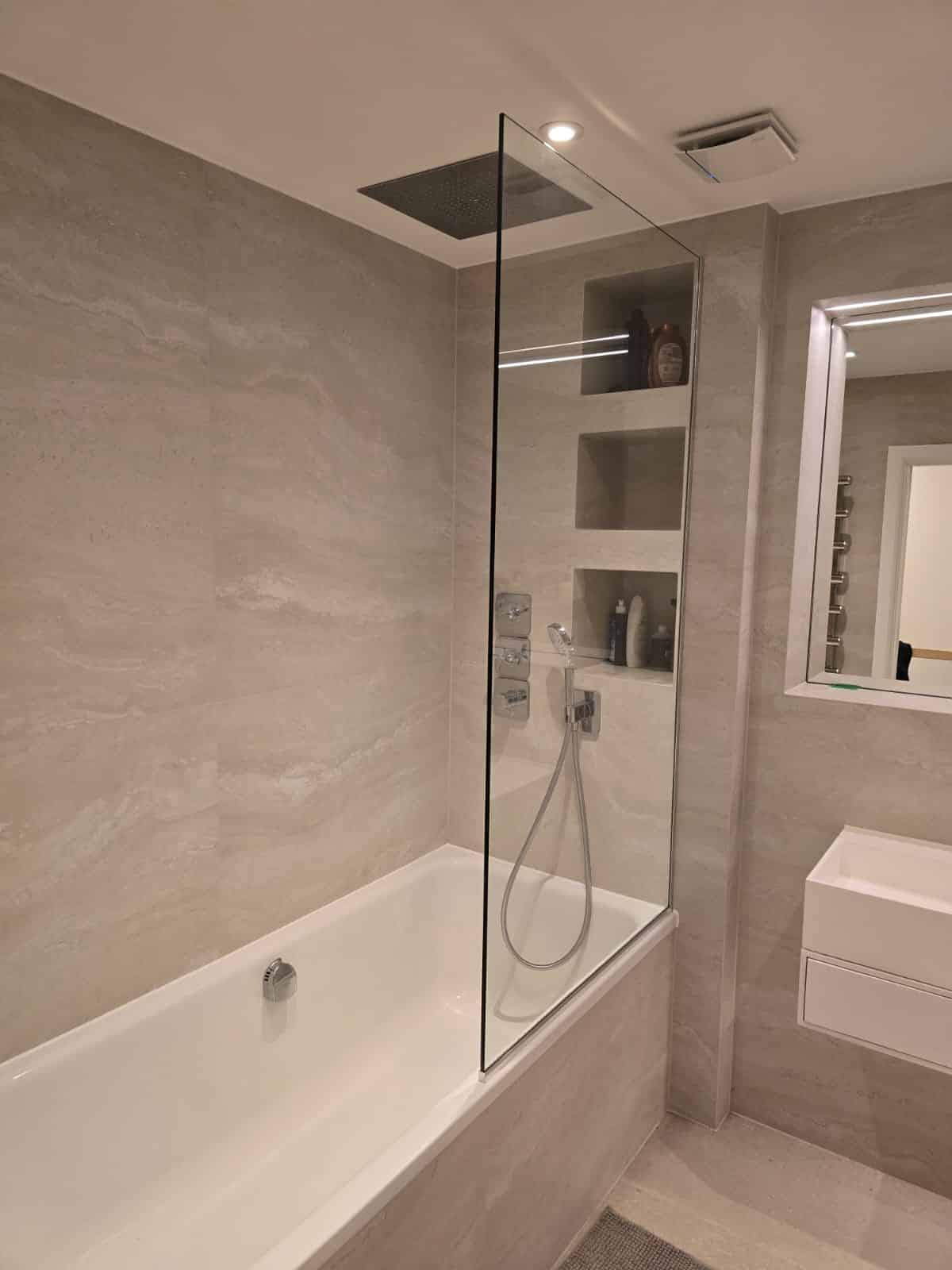 Browse our made-to-measure bath screen gallery, featuring custom glass installations tailored to suit a wide range of bath layouts and bathroom styles. Each screen is designed for a precise fit and dependable everyday use.