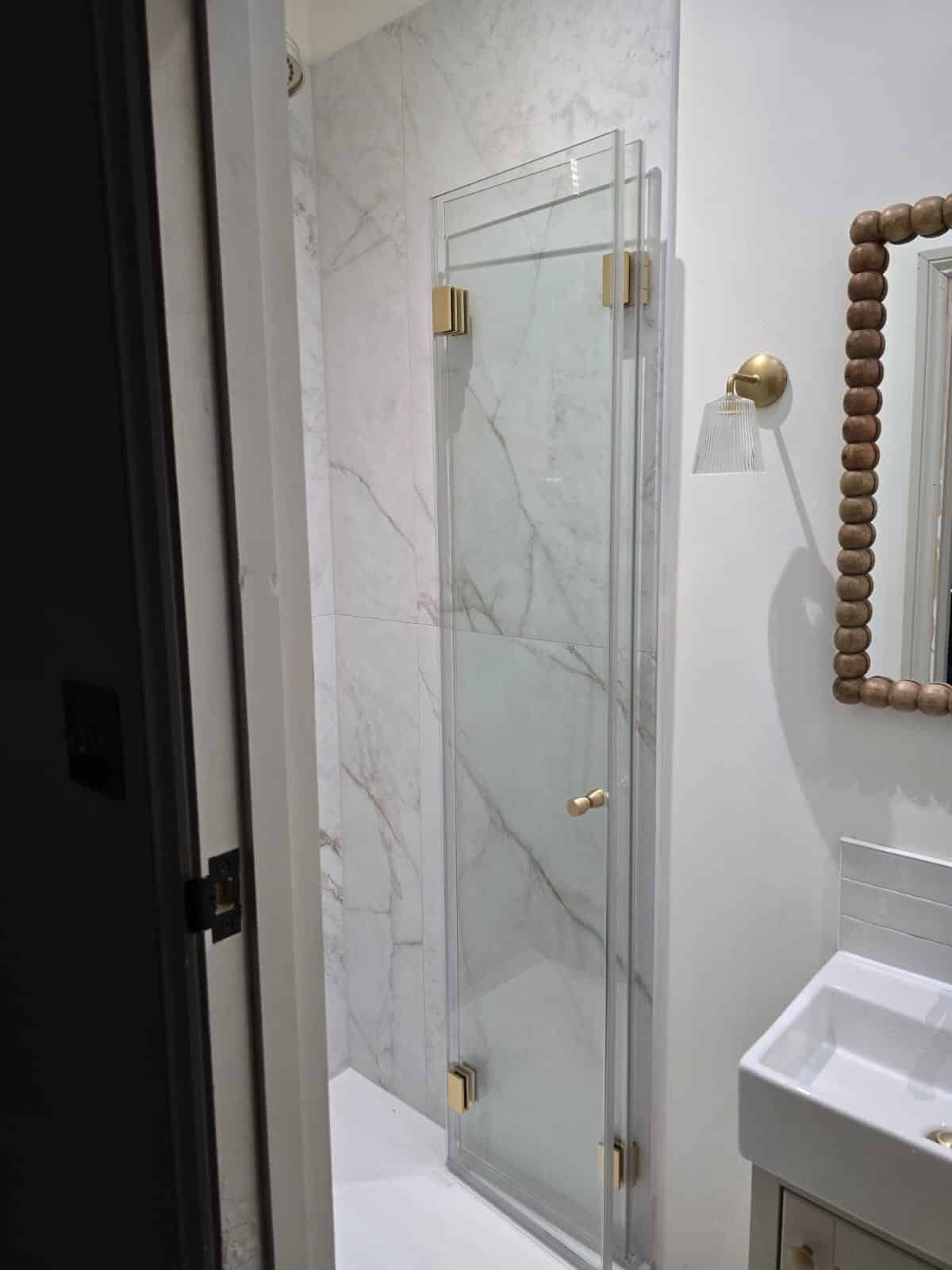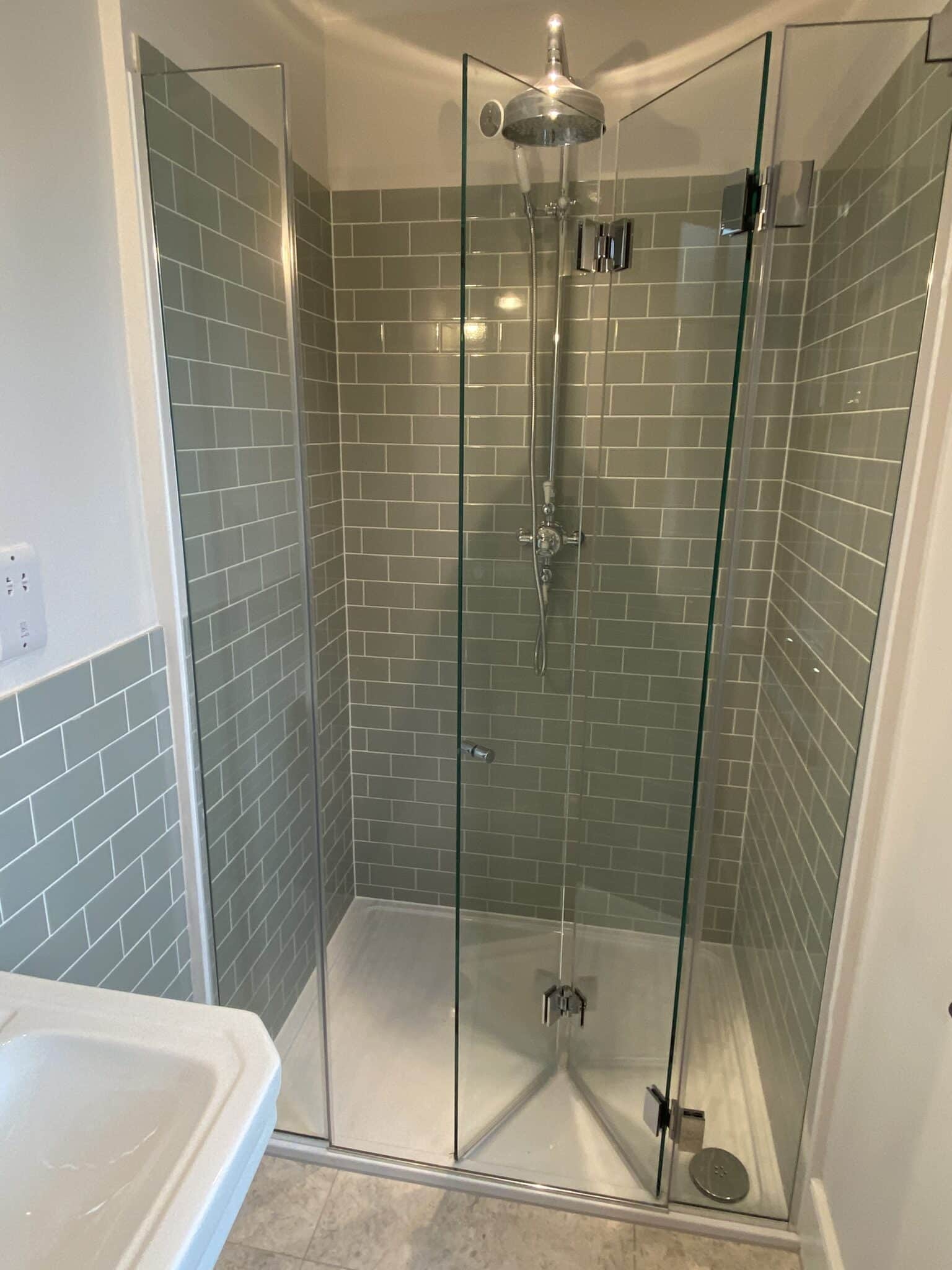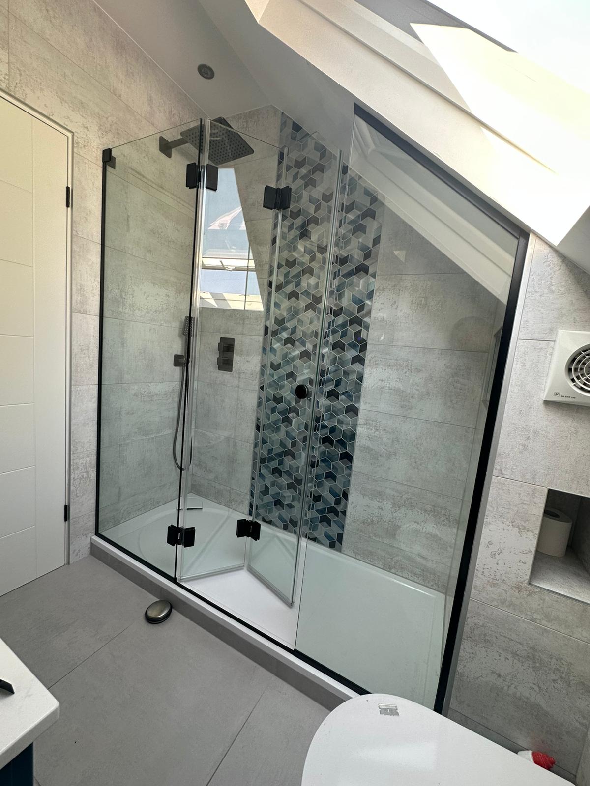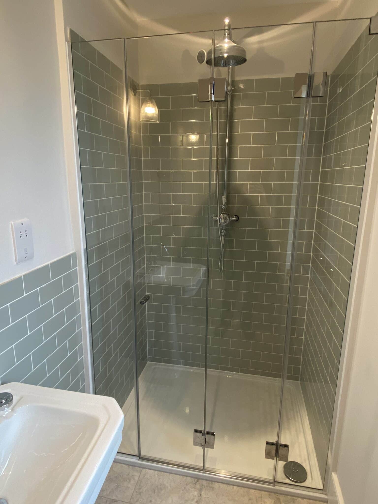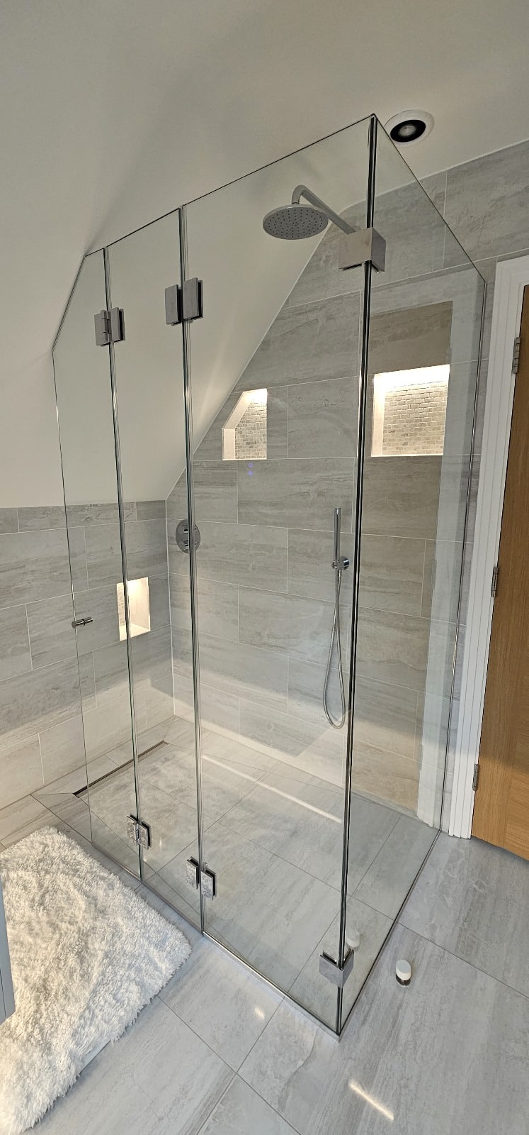 Explore our bifold shower gallery, showcasing custom glass installations designed for bathrooms where space and access are key considerations. Each bifold shower is made to measure, combining smooth folding operation with precise fitting and a clean, practical finish.