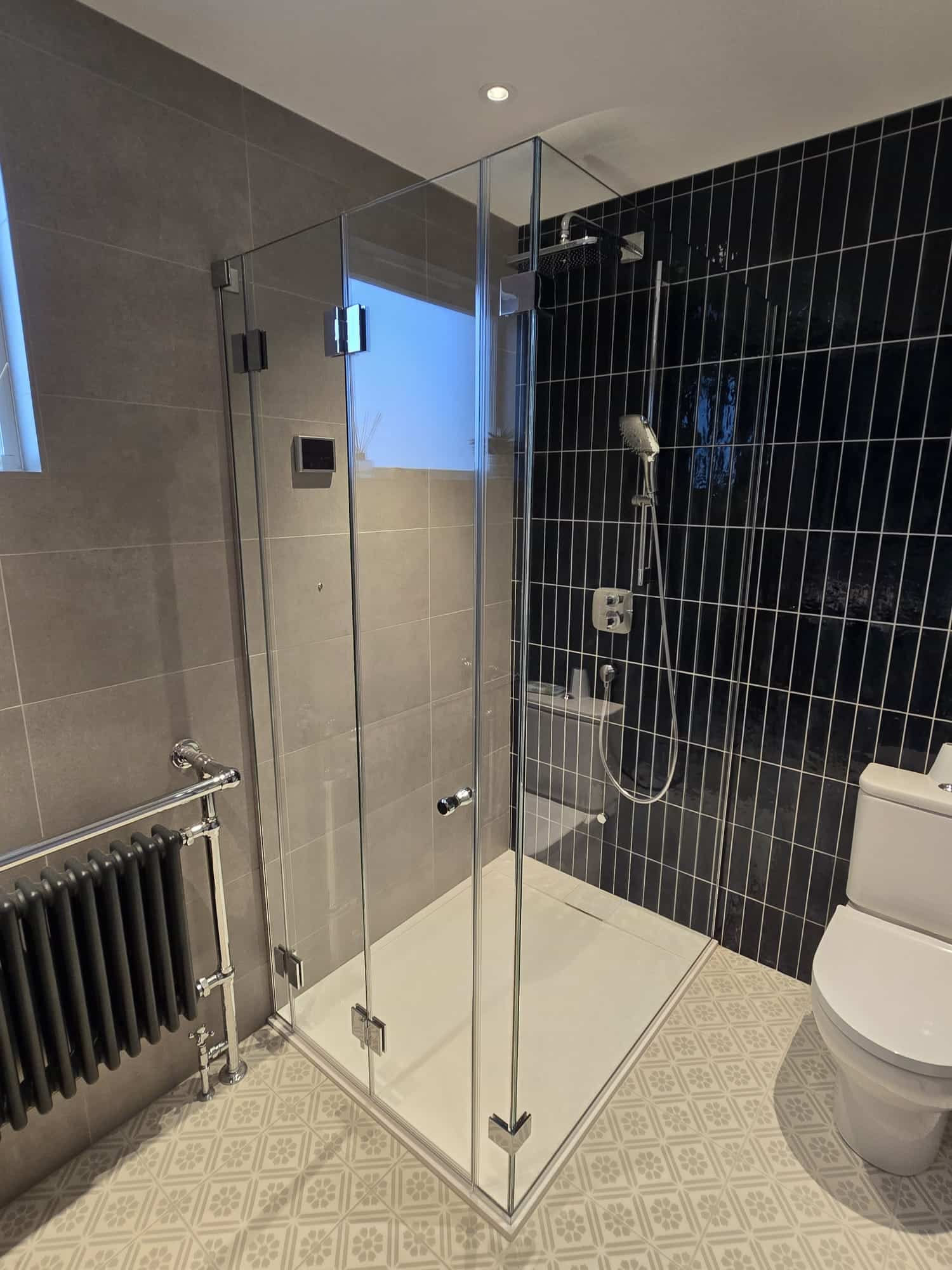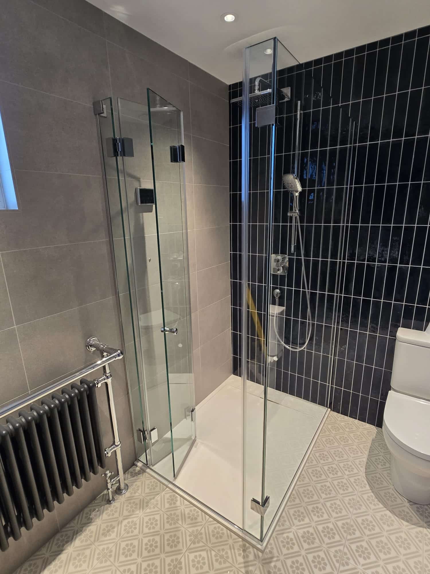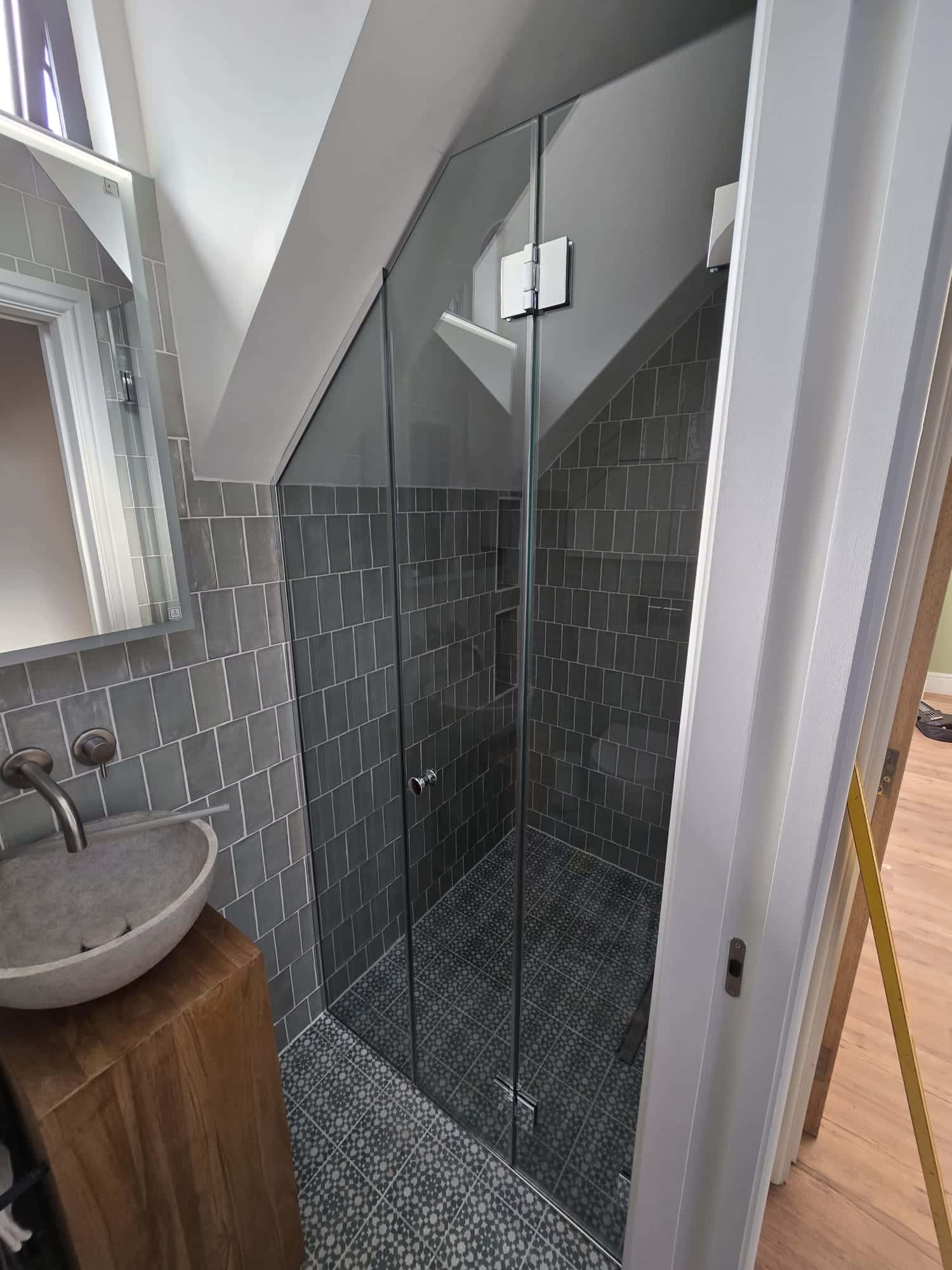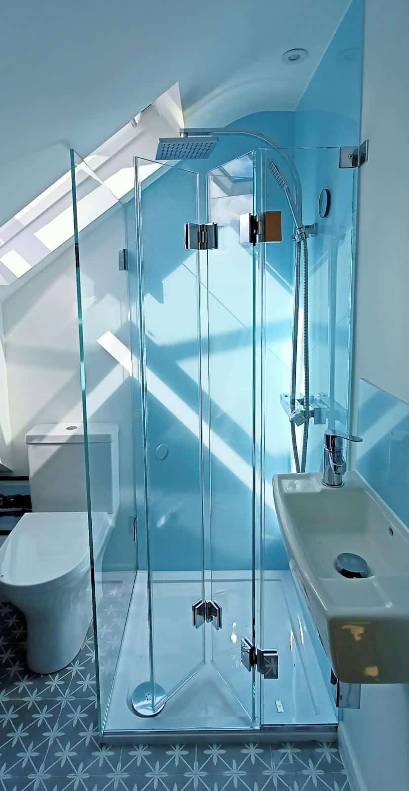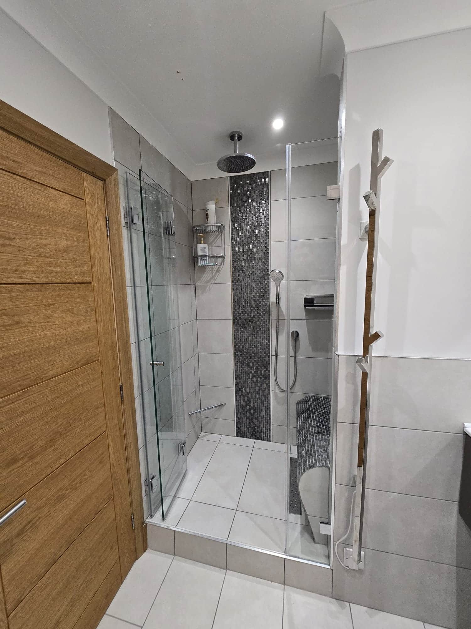 Explore our bifold shower gallery, showcasing custom glass installations designed for bathrooms where space and access are key considerations. Each bifold shower is made to measure, combining smooth folding operation with precise fitting and a clean, practical finish.