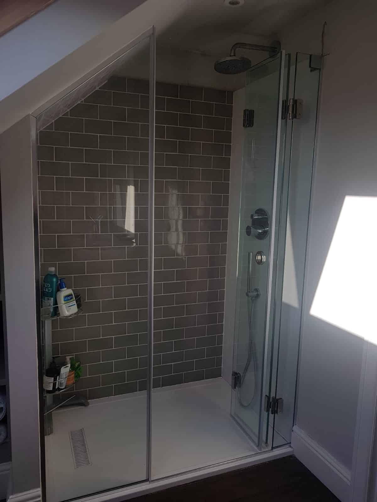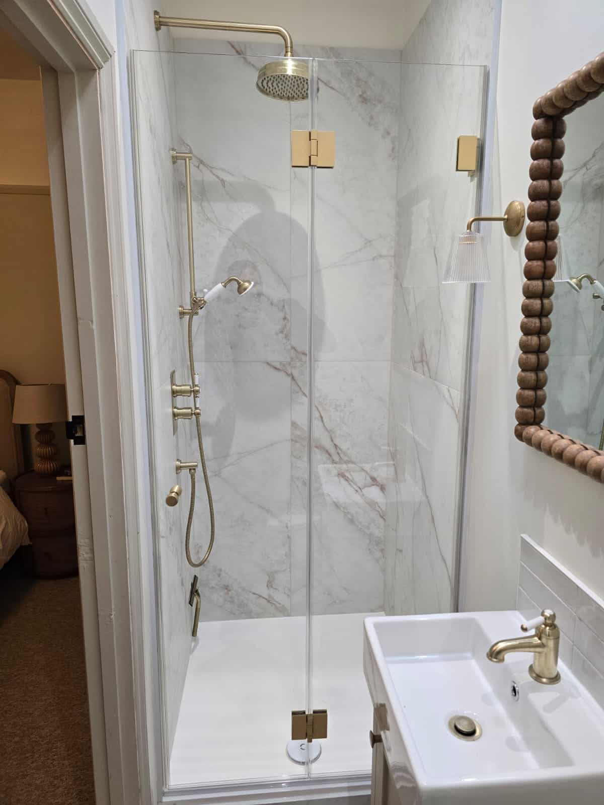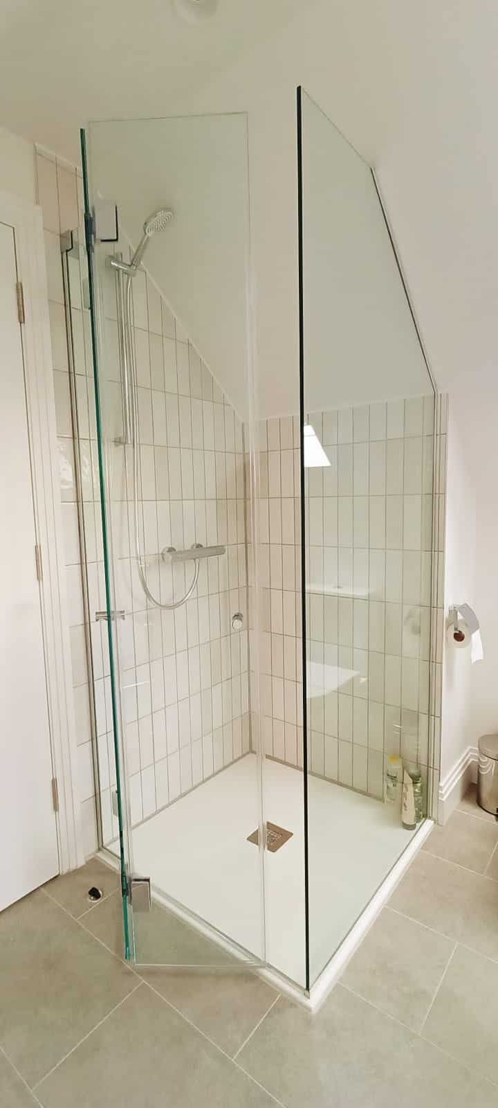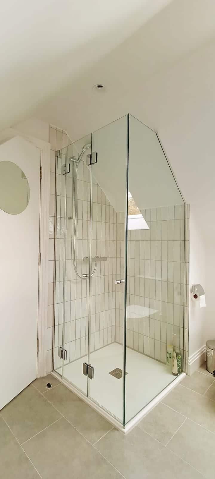 Explore our bifold shower gallery, showcasing custom glass installations designed for bathrooms where space and access are key considerations. Each bifold shower is made to measure, combining smooth folding operation with precise fitting and a clean, practical finish.