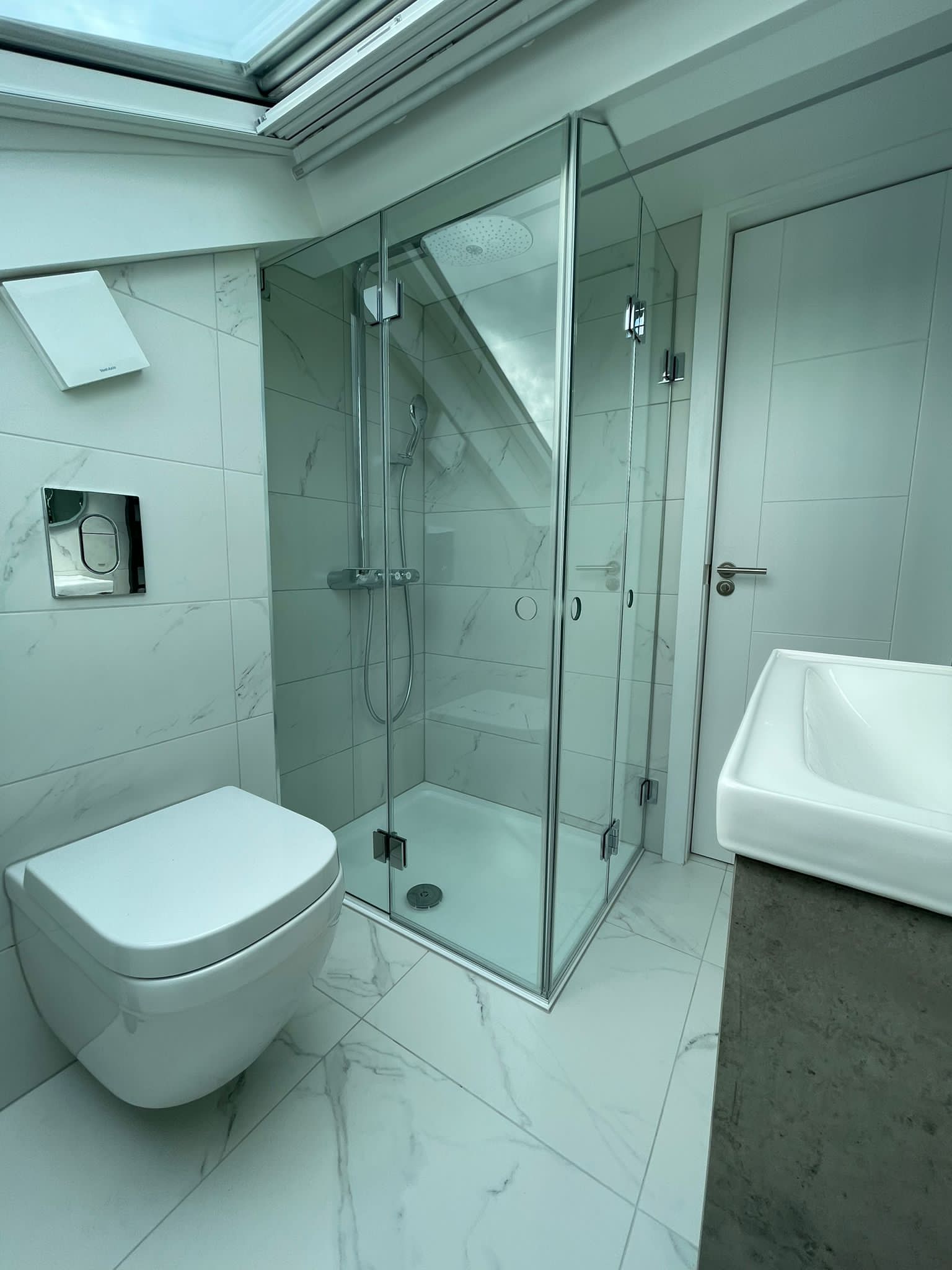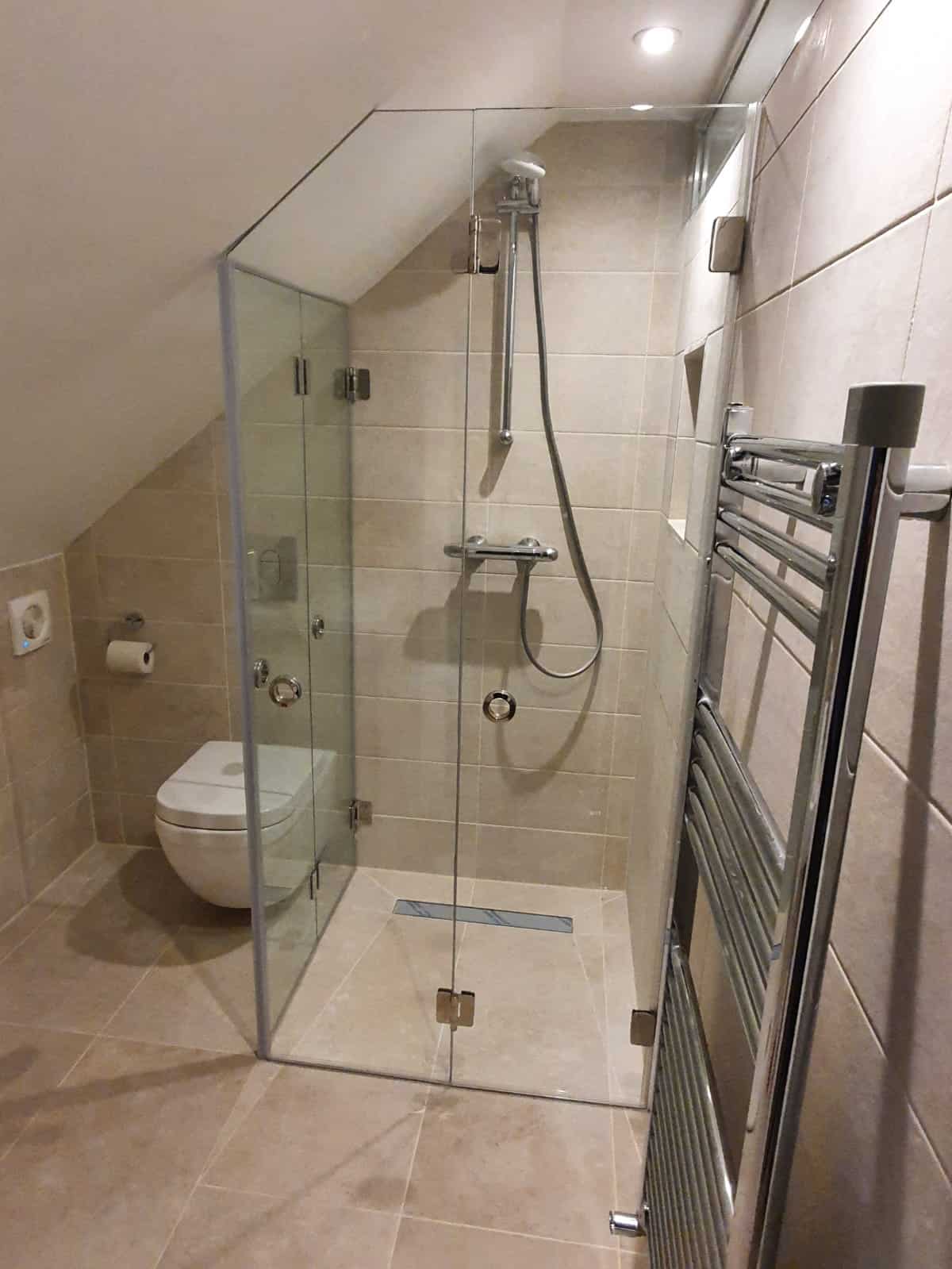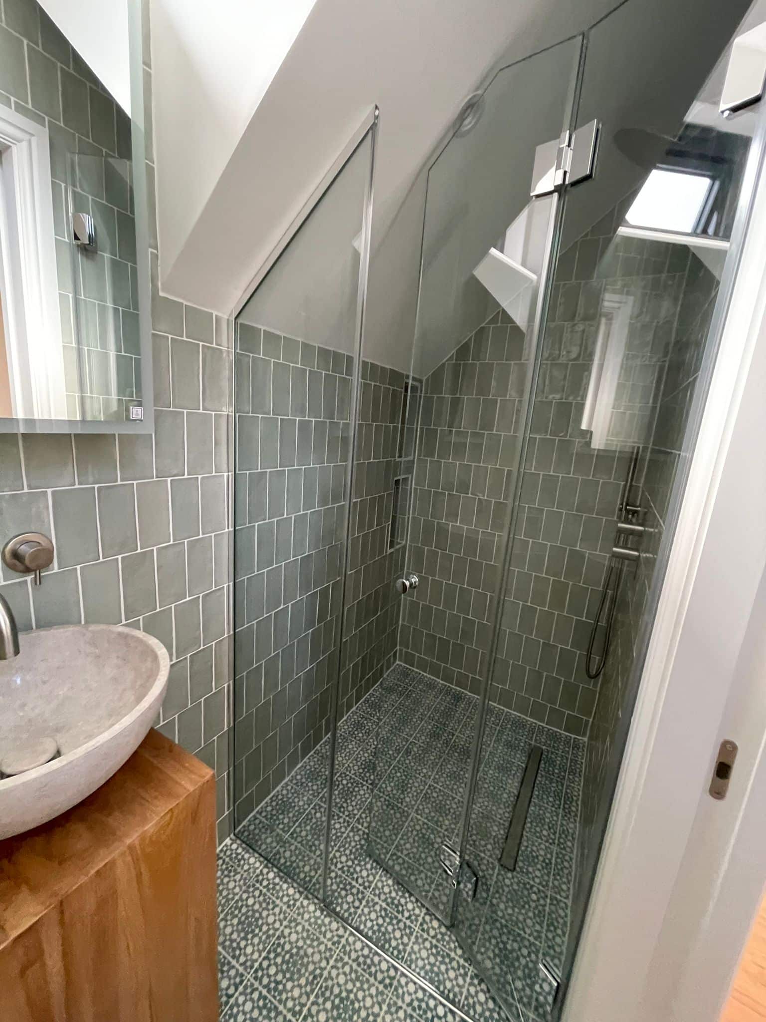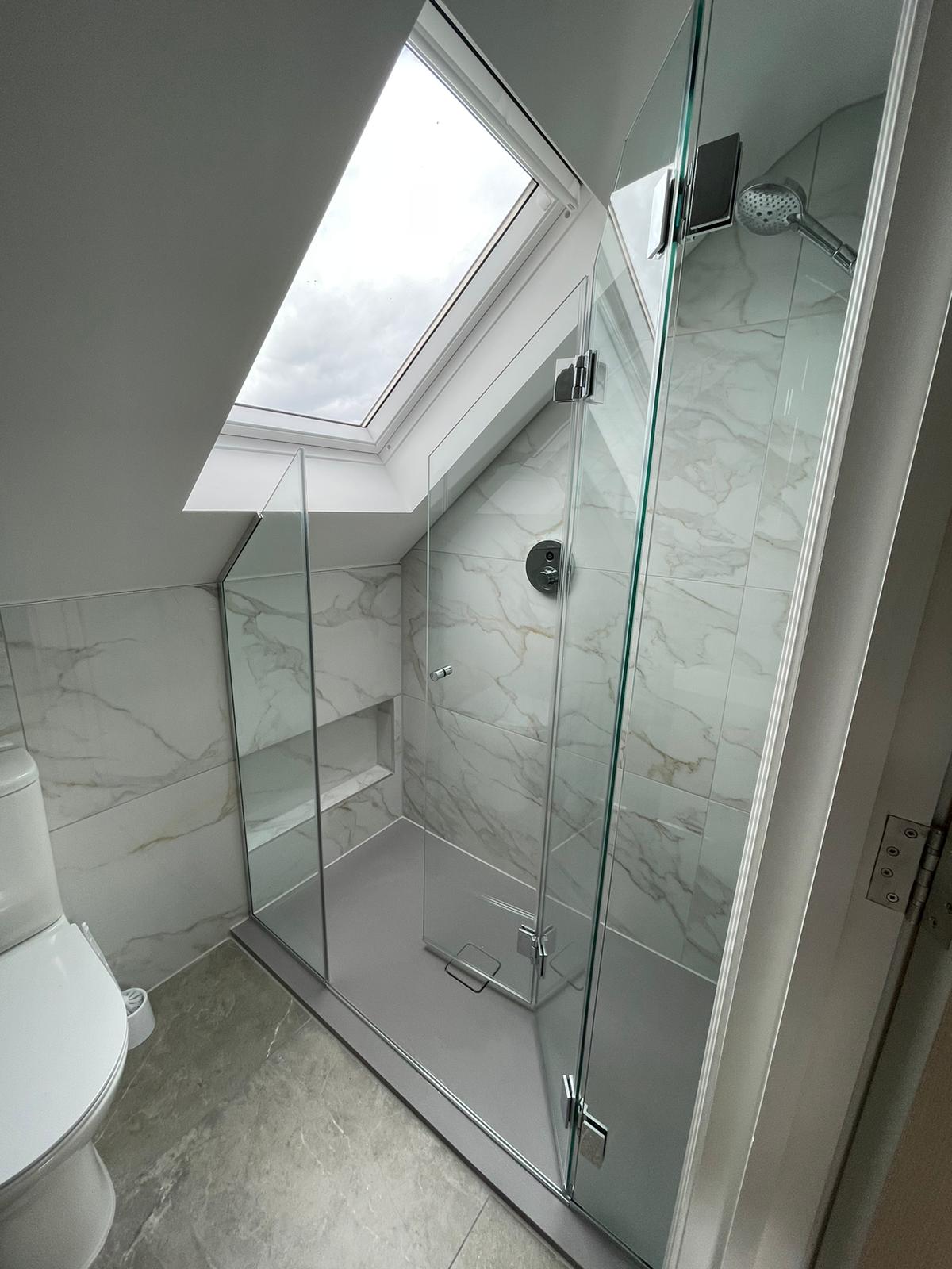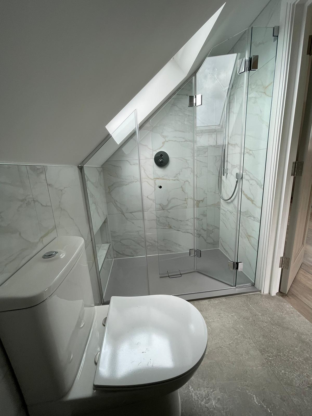 Explore our bifold shower gallery, showcasing custom glass installations designed for bathrooms where space and access are key considerations. Each bifold shower is made to measure, combining smooth folding operation with precise fitting and a clean, practical finish.