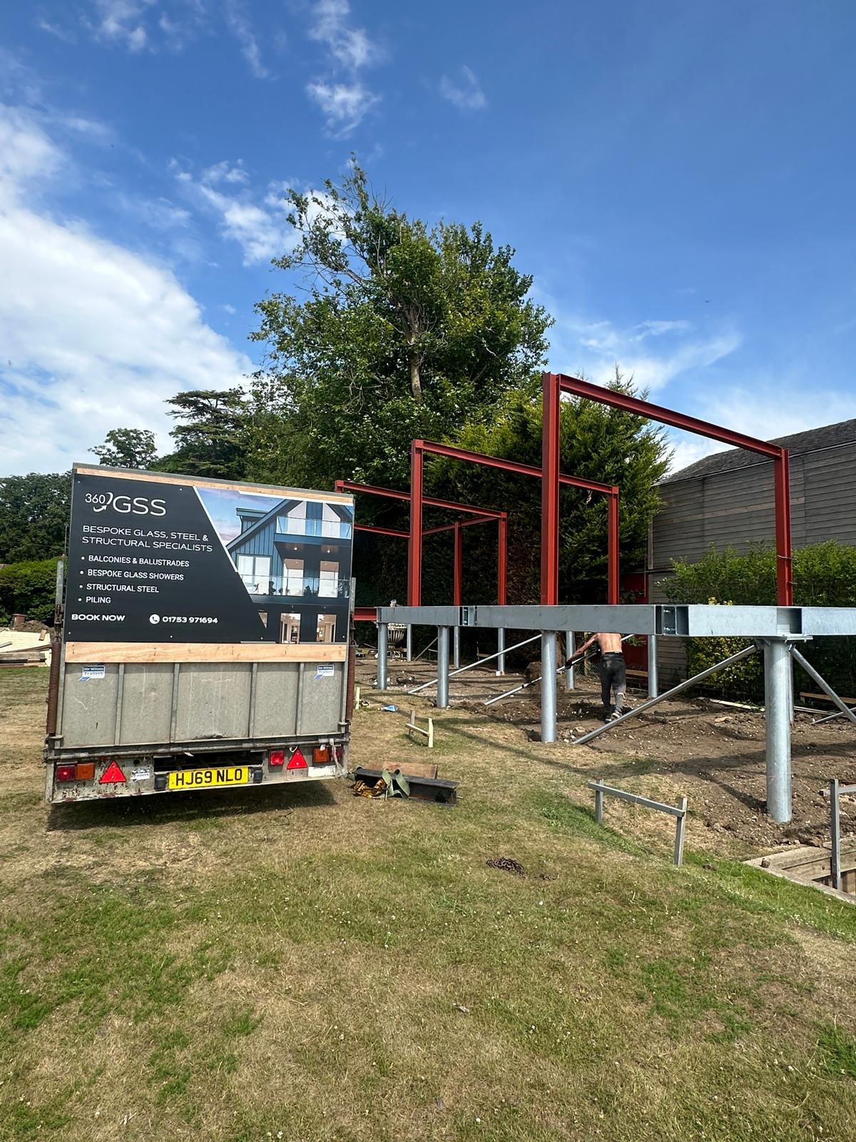 360 GSS stepped in with a bold alternative: a helical piling and steel fabrication system designed not only to overcome logistical barriers but also to deliver millimetre-perfect accuracy. Partnering with IMS (www.industrialmetal.co.uk) for the steel supply, 360 GSS fabricated and installed a fully engineered solution that aligned with the client’s vision while saving significant cost and disruption.
