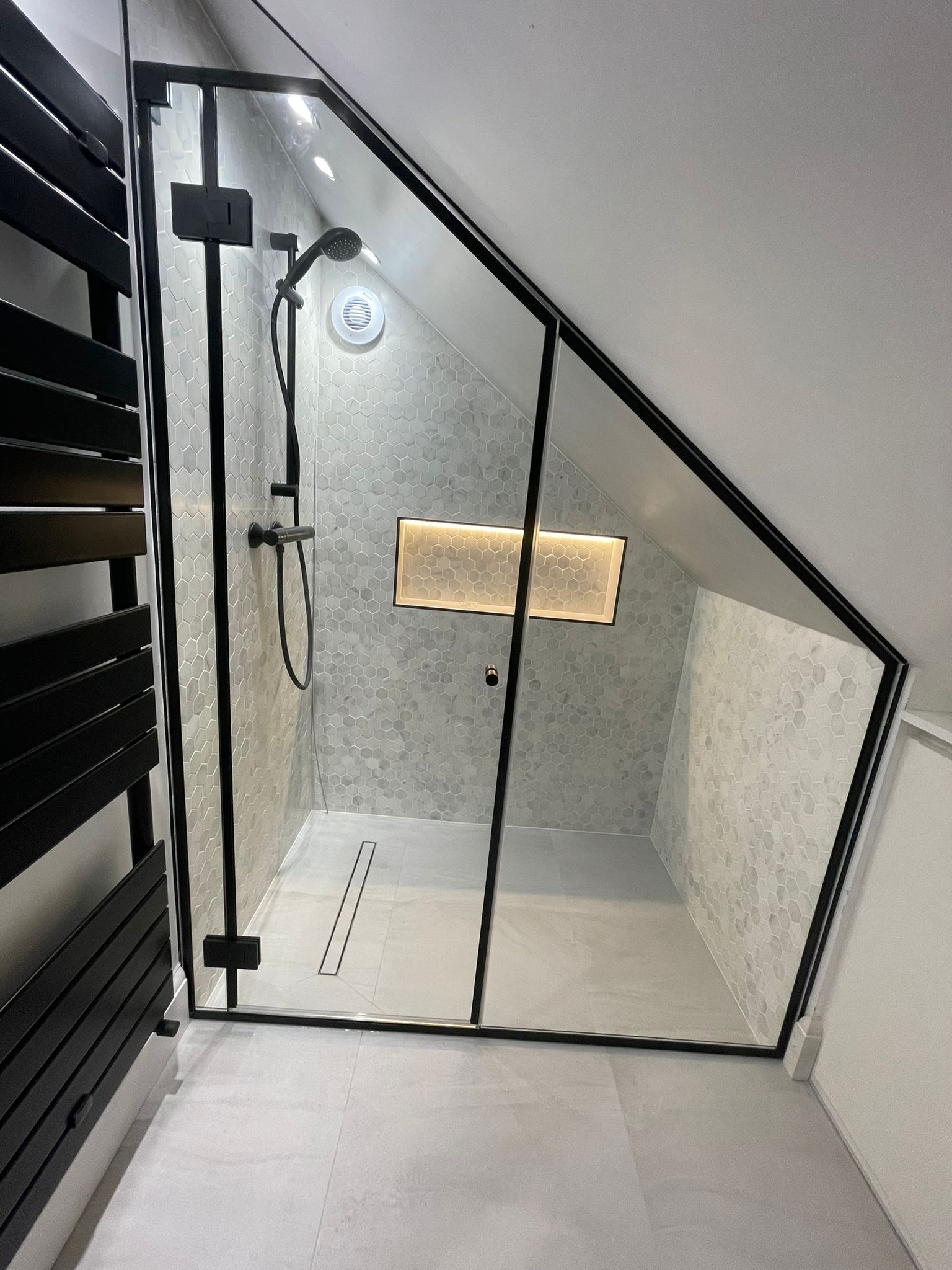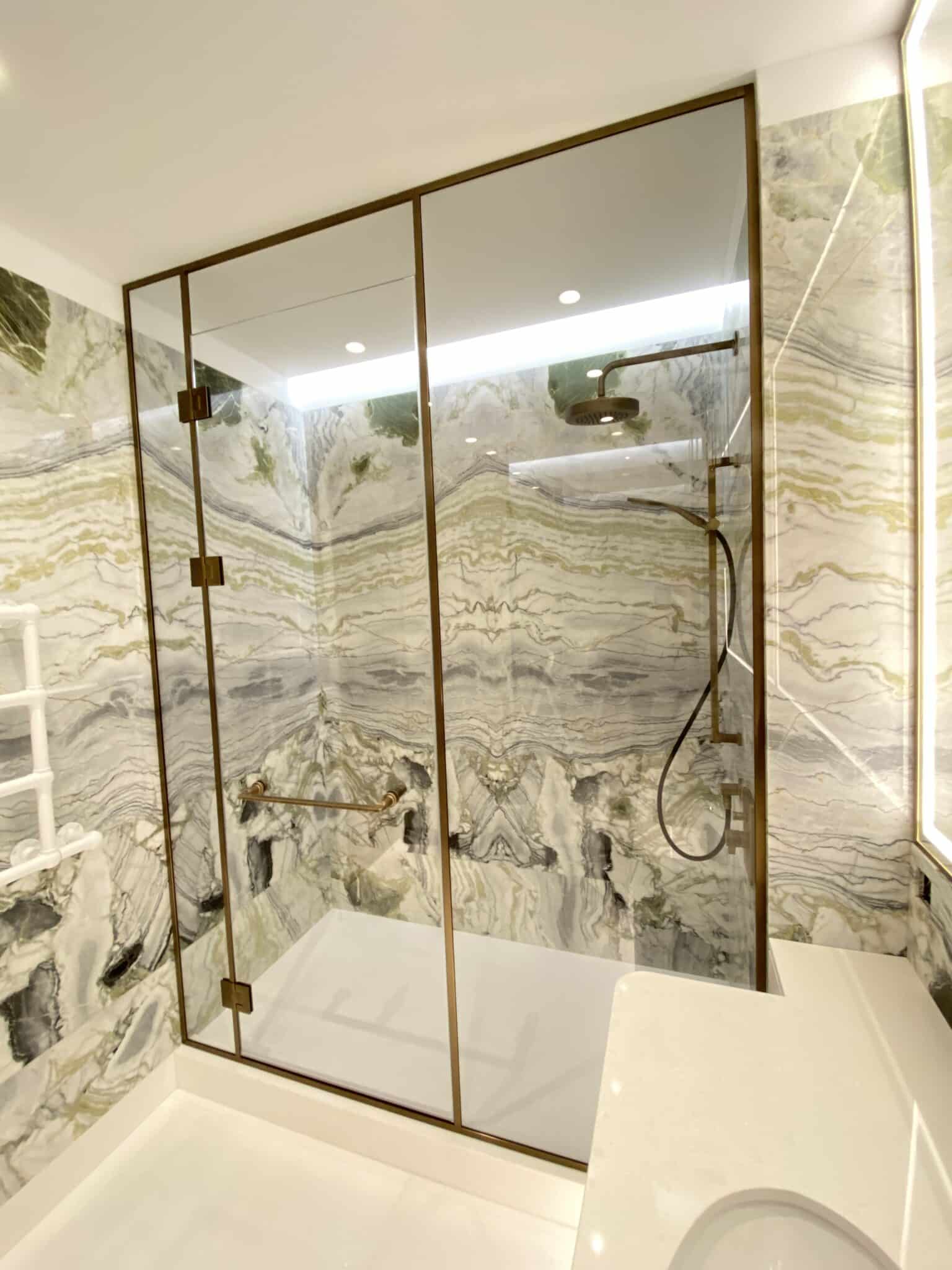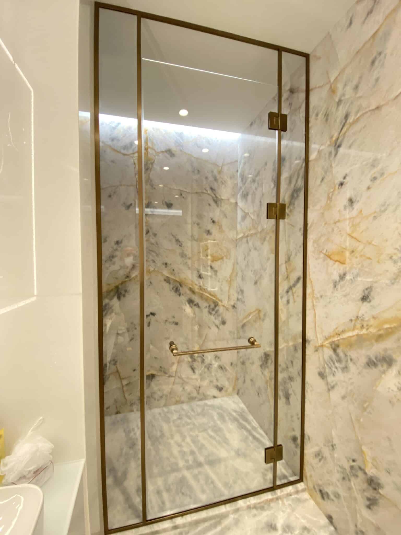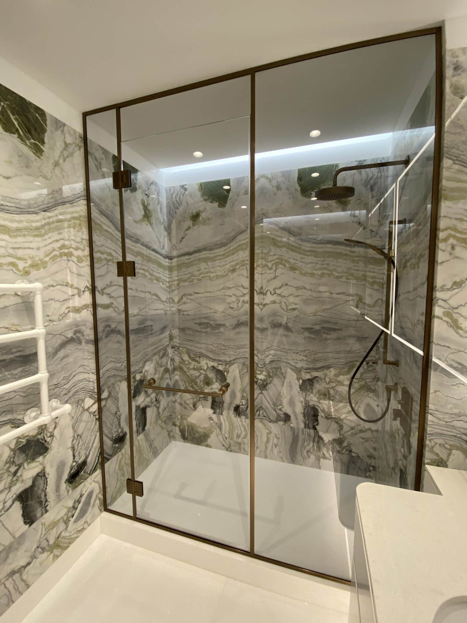 Browse our demi-framed shower gallery, featuring custom glass installations that blend minimal framing with refined detailing. Each shower is made to measure for a balanced look that offers structure, durability, and a clean finish.